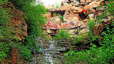 云瀑洞天景區(qū)依山傍水,山間巨石林立,其間最著名的便是那塊一指可動的百噸奇石了,它長7米,寬5米,重達(dá)百噸,而如此龐然大物,卻可憑游人一指之力,上下顫動。面對如此奇觀,攝影家們也紛紛走上前去,感受百噸巨石在自己的手指下微微顫動的奇妙感覺。指動石還有另一奇特之處,那便是在它的底部有一幅中國地圖,大西北、東三省、寶島臺灣都?xì)v歷在目,于是指動石便有了另一個豪邁的名字——“指點(diǎn)江山”。
