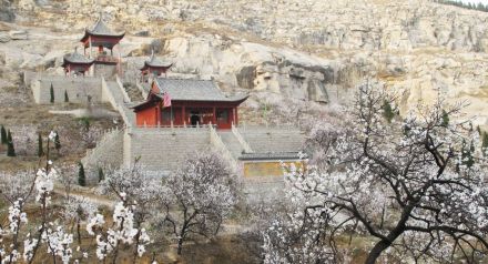 位于虎頭峰與雪山峰之間的山坳中,上植千株梨杏,人稱十里杏花村。杏花村有王林酒店、石井甘泉、問禮堂、蓮臺寺、西竺禪師墓碑等古跡。