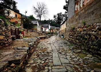 從進(jìn)村的第一道門——禮門開始,便是保留至今的明代始建的古道。山石鋪就的古道中央,嵌有兩溜大塊青石,形似鐵路,村民們形象地稱其為“雙軌”古道。“雙軌”不為好看,而有其獨特的用途。早年村里就規(guī)定,走路必須靠右行,兩股道自然也分成了上下行,這與今天的交通規(guī)則不謀而合。古道的盡頭便是連接各家各戶的小徑,為了防滑,斜坡上的道心用的是沙石而不是青石。有趣的是,在村的中央,還有兩座清康熙年間修建的青石拱橋,上下皆可行人走車馬,大雨時,橋下亦可行洪。橋身青石壘砌,不用灰漿,雖有三百余年的歷史,依然堅固如初。有專家說這是現(xiàn)代立交橋的雛形?吹贸鲞@小小的山村從始建之初就經(jīng)過高人指點,充分體現(xiàn)了“天人合一”的人文情懷。