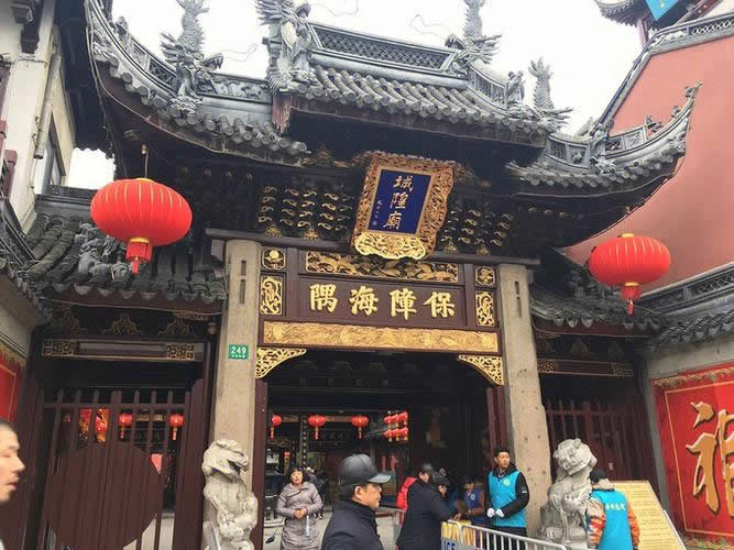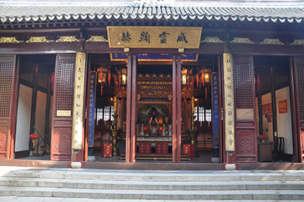 上海城隍廟,位于上海市黃浦區(qū)方浜中路249號,坐北朝向南,內(nèi)部有大門、二門、戲樓、大殿、寢宮、東西廊廡,沿中軸線依次排列,總面積約三千余平方米。廟內(nèi)主體建筑有大殿、元辰殿、父母殿、關圣殿、文昌殿等9個殿堂,總面積約三千余平方米。大殿、中殿改為鋼筋混凝土結構。大殿高16米,寬13.7米,進深21米。歇山頂,彩椽畫棟,翠瓦朱檐,華麗輝煌。大殿前有照壁、牌坊、戲臺、碑亭。大殿祀霍光,中殿祀秦裕伯,兩側花廳奉城隍父母,后殿奉城隍夫人,樓上為寢宮。