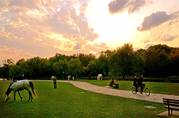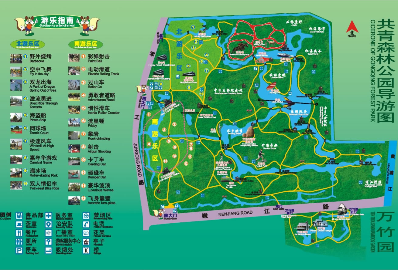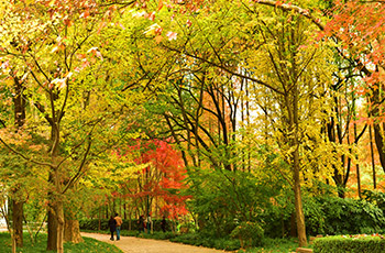 上海共青國(guó)家森林公園是以森林為主要景觀的特色公園,共種植200余種樹(shù)木,總數(shù)達(dá)30多萬(wàn)株。公園分為南北兩園,北園占地1631畝稱為共青森林公園,南園占地239.6畝稱為萬(wàn)竹園。南北園風(fēng)格各異,北園著重森林景色,有丘陵湖泊草地,南園則小橋流水一派南國(guó)風(fēng)光。除觀景之外,游人也可在園內(nèi)騎馬,燒烤和垂釣。