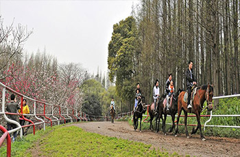 位于公園北部,叢林原野之西,占地約6.75萬(wàn)平方米。在密林中設(shè)寬4米,長(zhǎng)300米的環(huán)形跑道,磚、石碴路基,泥夾沙路面。兩邊設(shè)有鋼筋混凝土柱和鐵索的護(hù)欄。開(kāi)始僅有上海電影制片廠寄養(yǎng)的6匹馬,1988年后陸續(xù)從陜西、新疆購(gòu)進(jìn)馬匹,形成有40匹馬,設(shè)施比較完備的騎馬娛樂(lè)場(chǎng)。
