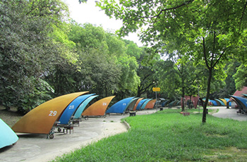 建園初期在“秋林愛(ài)晚”北部建了一處簡(jiǎn)易碼頭。1993年投資8萬(wàn)元,在簡(jiǎn)易碼頭東面建造電動(dòng)船碼頭、鋼結(jié)構(gòu)玻璃瓦頂船塢棚及修理房,建筑面積1147平方米。1994年又投資40.2萬(wàn)元,在“秋林愛(ài)晚”南部建造手劃船碼頭、水泥平頂船塢和管理房,建筑面積429平方米。共有手劃船62只、腳踏船10只、電動(dòng)船43只。