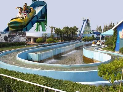 這是一個非常刺激又好玩的游戲,游客坐上寬寬的木船,順流而行,穿越瀑布,心里就不禁打顫,當(dāng)木船急劇向下沖時的一剎那,水花四濺,高昂的樂章響起,心情也隨之飛揚。