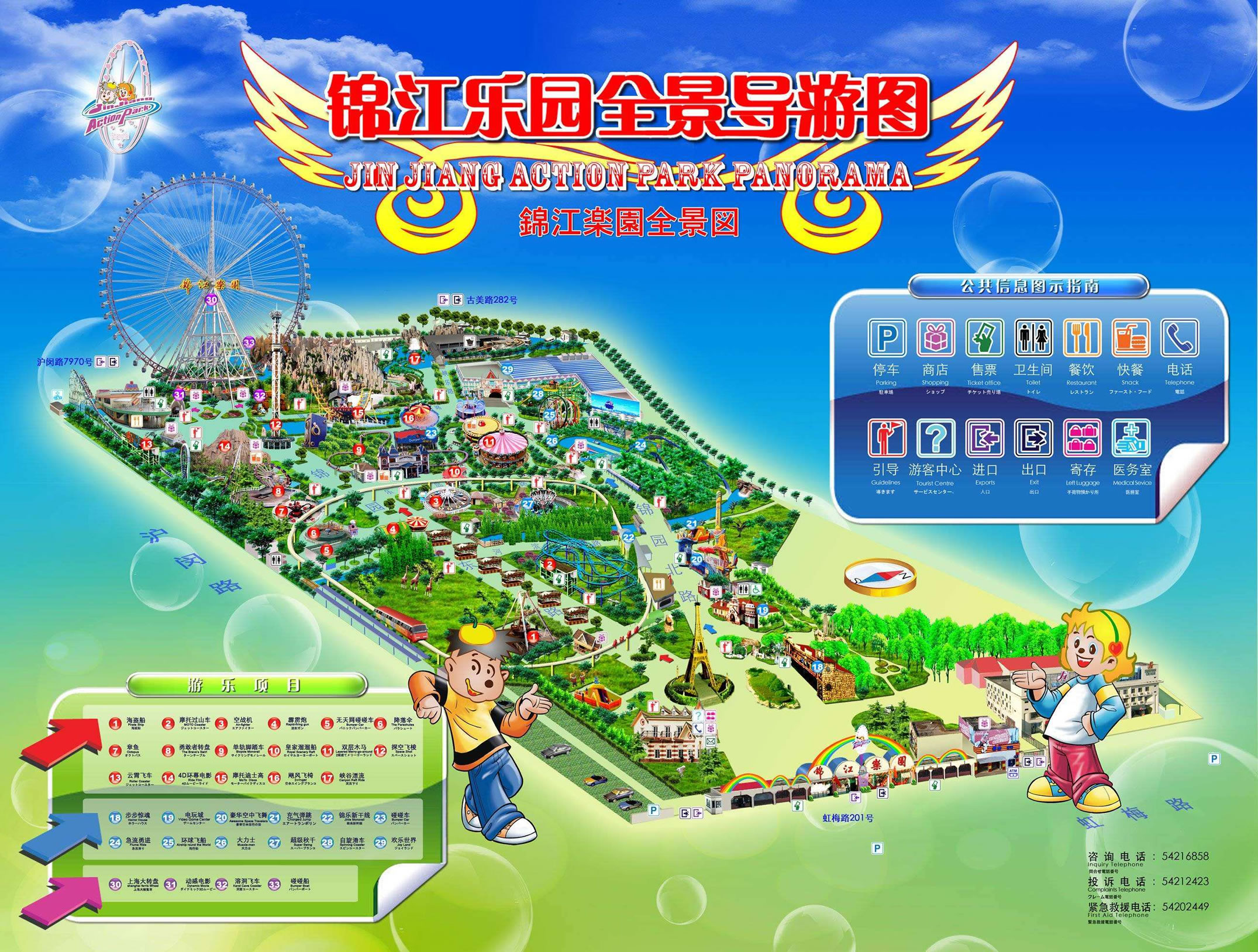 錦江樂園地處上海市西南部虹梅路 201 號,上海地鐵 1 號線、滬杭甬高速公路線和鐵路滬杭線直接到達樂園。此外,市區(qū)內(nèi)20