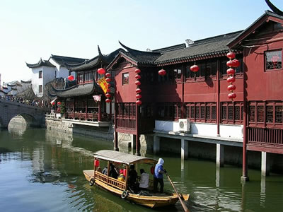 七寶老街改造歷時兩年多,現(xiàn)已完成一、二期建設(shè)任務(wù)。第一期,修繕蒲匯塘橋和南北一條街,辟建鐘樓和塘橋兩處休閑廣場。第二期,新建蒲匯塘水閣和修復(fù)相應(yīng)的上塘房,重建東西兩座石橋、蒲匯碼頭和七寶校場,恢復(fù)典當(dāng)街,建造張充仁紀(jì)念館等。主事者重視古鎮(zhèn)修復(fù)改造中的文化表現(xiàn),在世人面前展現(xiàn)的是一條保留明清建筑特色的商業(yè)文化街,同時兼有地方文化內(nèi)涵的歷史老街。作為閔行區(qū)唯一還保存著古樸建筑風(fēng)貌的七寶古鎮(zhèn),現(xiàn)在成了游人們訪舊懷古之勝地。不然,享有盛名的七寶老酒去哪里聞?在以餐飲小吃為主的南大街上,返璞歸真的酒坊還在,七寶老酒的生產(chǎn)全過程一一展示于人。傳統(tǒng)的七寶羊肉,白切、紅燒、熱煲,各種口味應(yīng)有盡有,連外來的“喬家柵”也看中此間古意而入駐老街。
