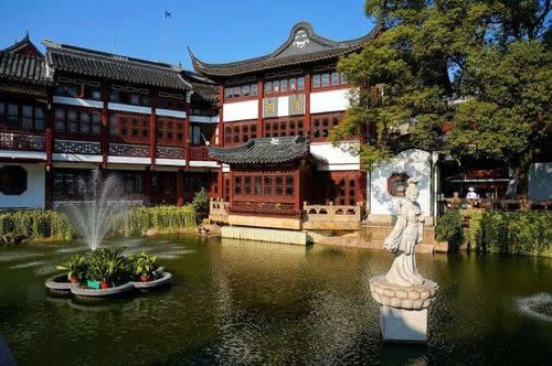 會景樓:位于豫園中央,登樓一望,全園景色會于眼底樓三面環(huán)水,周圍栽著香樟、石榴、紫薇、紅楓、羅漢松等許多樹木。