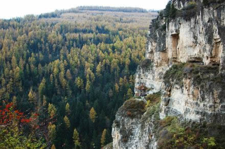 懸崖棧道位于涔山鄉(xiāng)張家崖村西的翔鳳山上,創(chuàng)建年代可上溯到唐朝貞元年間。原長42華里,一座座懸空古剎由棧道相連,驚險絕倫,獨具特色,是“中國華北地區(qū)罕見的水平聯(lián)洞型棧道”,也是寧武縣古十景之一。