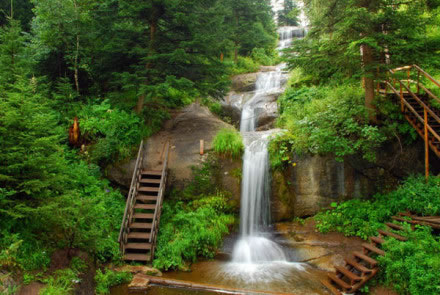 九重瀑布位于寧武縣東寨鎮(zhèn)大溝村腳下,在情人谷景點與馬侖草原之間,距東寨鎮(zhèn)約12公里。因其地勢高峻,天藍氣清,有似入天宇之感,故名“九重瀑布”。瀑布從森林密布的山谷石崖上直瀉而下,全場300余米,落差高達55米,流量120m/s,負(fù)氧離子28000個/cm,暑期最高氣溫19°C。
