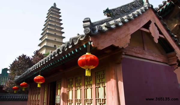 普救寺位于永濟市蒲州鎮(zhèn)的土崗上,始建于唐武則天時期,原名永清院,是一座佛教十方院。元代王實甫《崔鶯鶯待月西廂記》中說的“紅娘月下牽紅線,張生巧會崔鶯鶯”的愛情故事就發(fā)生在普救寺內。歷經歲月滄桑,寺內殿閣僧舍均已毀坍湮沒,唯有13層、高37米的舍利磚塔(俗稱鶯鶯塔)依然屹立于土崗之上。20世紀80年代中期,依據唐代佛教寺院的布局和西廂記故事的格局修復了普救寺,F(xiàn)在巍峨高大的主殿、小巧玲瓏的西廂書齋、方整寬敞的塔院、崔相國夫人和鶯鶯小姐所在的佛居別墅等建筑都已落成,它們依山而筑,錯落有致。