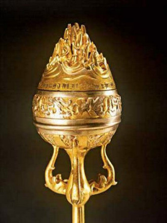 1981年5月茂陵一號無名冢南出土,整體分為座、杯上下兩部分,座為盤足,柿蒂狀支架,承托耳杯。酒杯平面呈橢圓形,圓形底,兩側(cè)附耳,紋飾華美,漆工與鎏金皆精湛,是研究西漢工藝美術(shù)史的珍貴實物資料。