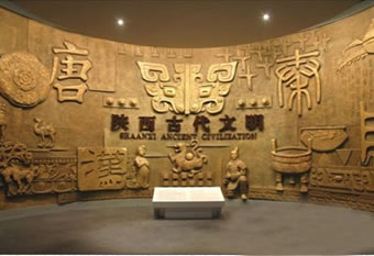 陜西歷史博物館基本陳列《陜西古代文明》,于2008年3月正式開放,以歷史進程為線索,選取各時代的典型文物進行組合陳列,來揭示陜西地區(qū)古代社會文明發(fā)展?fàn)顩r。該陳列展廳面積4600平方米,共三個展室,分為七個部分(史前、周、秦、漢、魏晉南北朝、隋唐、宋元明清),精選的2000余件珍貴文物包括:反映古代先民生活情景和藝術(shù)追求的豐富多姿的彩陶器皿,反映周人興起與鼎盛的青銅器,反映秦掃六合統(tǒng)一天下氣勢的青銅劍、經(jīng)機、兵馬等,以及顯示秦漢奮發(fā)崛起精神的鋼建筑構(gòu)件、大型瓦當(dāng),還有反映封建盛世繁榮景象的精美的唐代金銀器和唐三彩等,并配以遺址模型、圖表、照片等輔助展品。系統(tǒng)地展現(xiàn)了自115萬年前至1840年陜西地區(qū)的古代歷史。由于中國古代社會周、秦、漢、隋、唐幾個盛期都是在陜西地區(qū)建都,所以該陳列以這幾個時期為重點,既突出反映了陜西地區(qū)古代燦爛的文化,也反映了這幾個時期中國社會經(jīng)濟文化發(fā)展的最高水平。