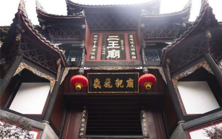 二王廟位于岷江右岸的山坡上,前臨都江堰,原為紀(jì)念蜀王的望帝祠,齊建武(494—498年)時改祀李冰父子,更名為“崇德祠”。宋代(960—1279年)以后,李冰父子相繼被皇帝敕封為王,故而后人稱之為“二王廟”。廟內(nèi)主殿分別供奉有李冰父子的塑像,并珍藏有治水名言、詩人碑刻等。建筑群分布在都江堰渠首東岸,規(guī)模宏大,布局嚴(yán)謹(jǐn),地極清幽。是廟宇和園林相結(jié)合的著名景區(qū)。占地約5萬余平方米,主建筑約1萬平方米。二王廟分東、西兩菀,東菀為園林區(qū),西菀為殿宇區(qū)。全廟為木穿逗結(jié)構(gòu)建筑,廟寺完全依靠自然地理環(huán)境,依山取勢,在建筑風(fēng)格上不強調(diào)中軸對稱。