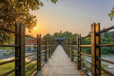 安瀾索橋又名“安瀾橋”、“夫妻橋”。位于都江堰魚嘴之上,橫跨內(nèi)外兩江,被譽為“中國古代五大橋梁”,是都江堰最具特征的景觀。始建于宋代以前,明末(17世紀(jì))毀于戰(zhàn)火。古名“珠浦橋”,宋淳化元年改“評事橋”,清嘉慶建新橋更名為“安瀾橋”。原索橋以木排石墩承托,用粗竹纜橫掛江面,上鋪木板為橋面,兩旁以竹索為欄,全長約500米,橋為鋼索混凝土樁。