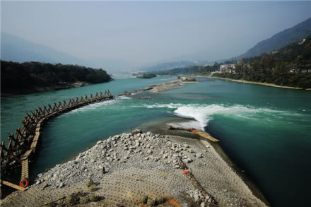 都江堰是當(dāng)今世界年代久遠、唯一留存、以無壩引水為特征的宏大水利工程。它充分利用當(dāng)?shù)匚鞅备、東南低的地理條件,根據(jù)江河出山口處特殊的地形、水脈、水勢,乘勢利導(dǎo),無壩引水,自流灌溉,使堤防、分水、泄洪、排沙、控流相互依存,共為體系,保證了防洪、灌溉、水運和社會用水綜合效益的充分發(fā)揮。它最偉大之處是建堰2250多年來經(jīng)久不衰,而且發(fā)揮著愈來愈大的效益。