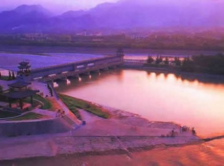 都江堰,位于四川省成都市都江堰市城西,坐落在成都平原西部的岷江上,是由渠首樞紐(魚嘴、飛沙堰、寶瓶口)、灌區(qū)各級引水渠道,各類工程建筑物和大中小型水庫和塘堰等所構(gòu)成的一個龐大的工程系統(tǒng),渠首占地面積200余畝。 它擔(dān)負(fù)著四川盆地中西部地區(qū)7市(地)40縣(市、區(qū))1130萬余畝農(nóng)田的灌溉、成都市多家重點企業(yè)和城市生活供水,以及防洪、發(fā)電、漂水、水產(chǎn)、養(yǎng)殖、林果、旅游、環(huán)保等多項目標(biāo)綜合服務(wù),是四川省國民經(jīng)濟發(fā)展不可替代的水利基礎(chǔ)設(shè)施。