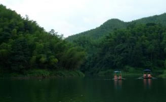 湖中有兩座不同的原形小島。湖水碧綠清澈,四周翠竹掩映,綠草如茵,附近有梅坪、古佛洞、涼風(fēng)洞、照妖鏡、七疊石等古跡。當(dāng)太陽(yáng)起落時(shí),滿(mǎn)湖金色,萬(wàn)道霞光,絢麗多彩。湖上可蕩舟劃筏,湖邊亭閣,也可品茗小酌。夏秋之夜,山巒沉郁而秀朗,清風(fēng)徐來(lái),漣漪翩翩,湖邊納涼閑話,別有情趣。