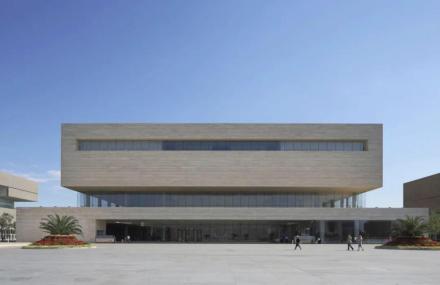 天津大劇院建筑設計立意為“城市舞臺”。由世界頂級建筑大師曼哈德 馮 格康親自擔綱,德國GMP建筑師事務所與現(xiàn)代設計集團華東建筑設計研究院聯(lián)合設計。總建筑面積10.12萬平方米,其中建筑本體8.5358萬平方米,地下設施1.5811萬平方米。