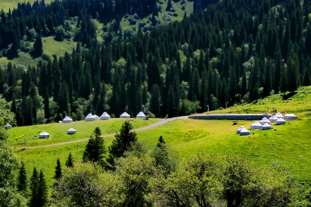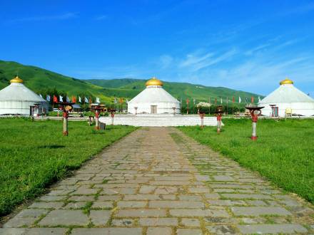 “烏孫故國何處尋,牧人遙指伊麗水”,草原部落建于2006年6月,還原了兩千多年前的烏孫部落,成為世界上第一個反映哈薩克族歷史、文化、民俗的綜合性景點,其部落內的烏孫金頂大帳,被稱之為“西北第一帳”。在這里可觀賞烏孫王迎娶漢家公主的盛大場面,體驗哈薩克族婚禮迎娶、民間生產生活等傳統民俗文化場景。