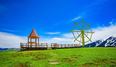 哈薩克語為草原會客廳,是古時候草原民族商量重大事宜的地方,現為景區(qū)河谷草原線路的綜合服務區(qū)?晒┯慰腕w驗騎馬、射箭、民族服裝留念、古道馬車、草地摩托車、住宿、直升機觀景等娛樂項目、餐以及住宿服務。