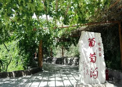 一是葡萄溝接待站。這是為中外賓客開辟的游覽場所,依山旁水,安靜、幽雅,景物天成,數(shù)條葡萄長廊深邃、幽靜,有的游客信步葡萄架下,仰首盡情觀嘗珍珠般的葡萄,有的游人坐在葡萄架下品嘗鮮葡萄。長廊盡頭碑石上葡萄溝三個鮮紅大字,格外引人注目,游人爭先恐后在此照相留念。園內(nèi)有民族風味的食堂,有賣工藝品的蒙古包,還有劃船游玩的地方。