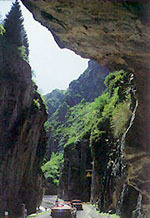 天池石門:景名為“石門一線”,海拔1500米,位于大天池以北5.9公里處,為一段被三工河古河道切割形成的石峽谷,這道山口是進(jìn)入風(fēng)景區(qū)的天然門戶;峽谷長(zhǎng)約百余米,最窄處僅十來米寬,兩側(cè)直立的巖壁高逾數(shù)十米,形勢(shì)峻險(xiǎn),仰視見一線天,側(cè)邊盤繞三工河水。