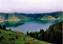 天池大海子:或稱主湖、大天池,位于博格達(dá)山脈北麓的中山峽谷森林帶內(nèi),湖面海拔1910米,成南北長(zhǎng)方形(一說呈半月形),南北長(zhǎng)3.5公里(3.4公里),東西寬0.5–1.5公里,周長(zhǎng)9.7公里,平均水深60米(40米),東北處最大深度103米(102米),湖面面積一般為2.75平方公里(3.5平方公里),最大面積4.90平方公里,平均蓄水量1.3億立方米(一般為1.6億噸,最大容水量2億噸);成因眾說紛紜,有冰川形成說、斷陷形成說、崩塌形成說、泥石流形成說等,池水主要由降水、融雪水組成,其次是少量地下水補(bǔ)充;大天池酷似一個(gè)頭南身北的葫蘆,其南段的三工河就是葫蘆的把,湖面?zhèn)髡f是王母娘娘的梳妝鏡,名“天鏡”,故景稱為“天鏡浮空”。