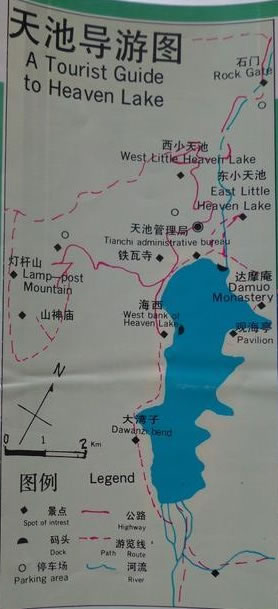 大灣子:景名為“大灣倒影”,即大天池湖面西南部,該處風(fēng)平浪靜,峰林映湖,在天池大海子西南側(cè)有大片坡度平緩的草地,是觀賞倒影的好地方,也是西岸到南岸步道中間的休息地;觀倒影一定要掌握時(shí)間,天池白天刮上山風(fēng),夜晚刮下山風(fēng),換風(fēng)時(shí)間一般在每天上午的九、十點(diǎn)鐘,這時(shí)天池最為風(fēng)平浪靜、倒影如畫。
