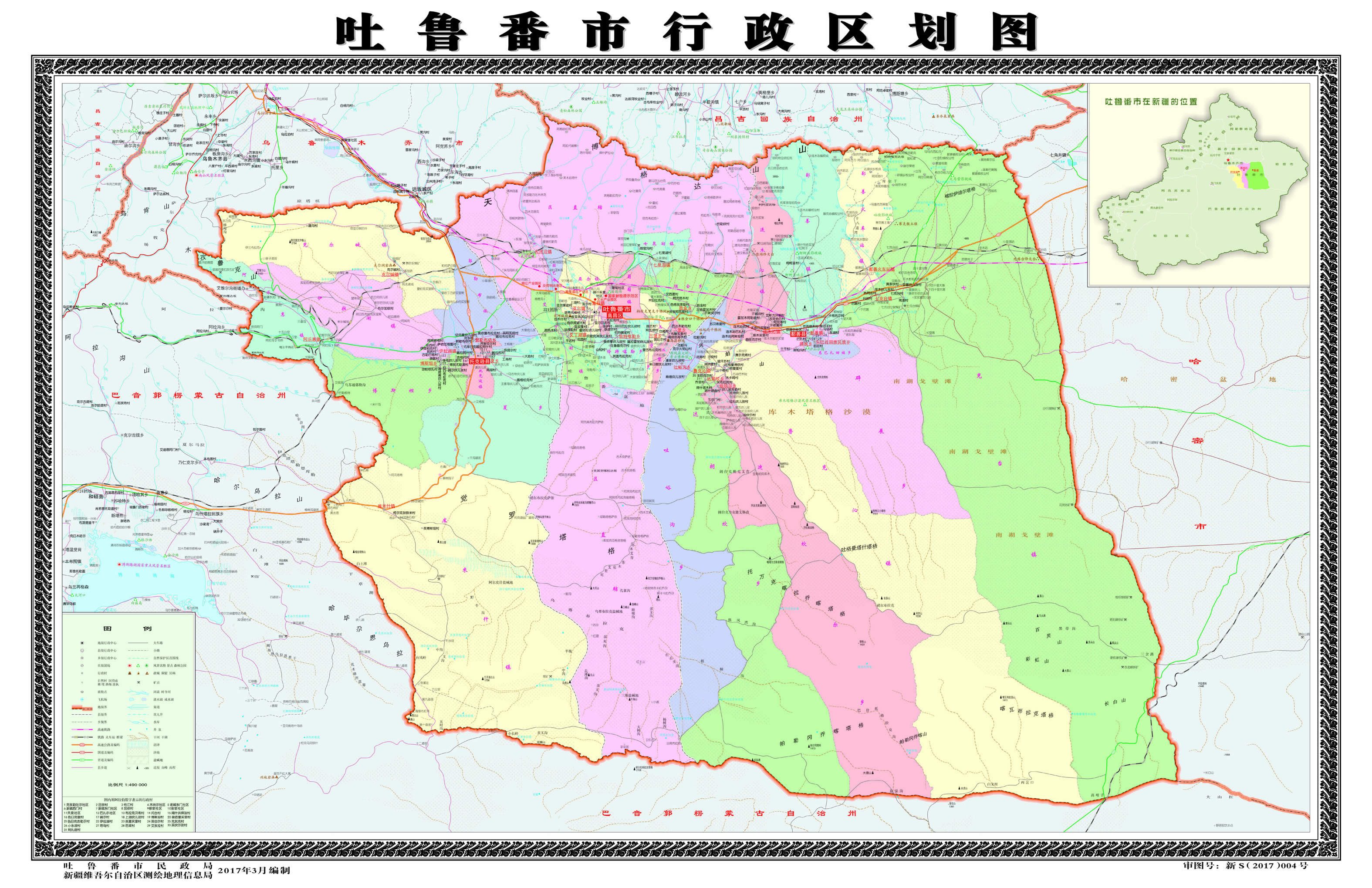 2015年4月,國務(wù)院批復(fù)同意撤銷吐魯番地區(qū)和縣級吐魯番市,設(shè)立地級吐魯番市;吐魯番市設(shè)立高昌區(qū),以原縣級吐魯番市的行政區(qū)域?yàn)楦卟齾^(qū)的行政區(qū)域;吐魯番市轄原吐魯番地區(qū)的鄯善縣、托克遜縣和新設(shè)立的高昌區(qū)。