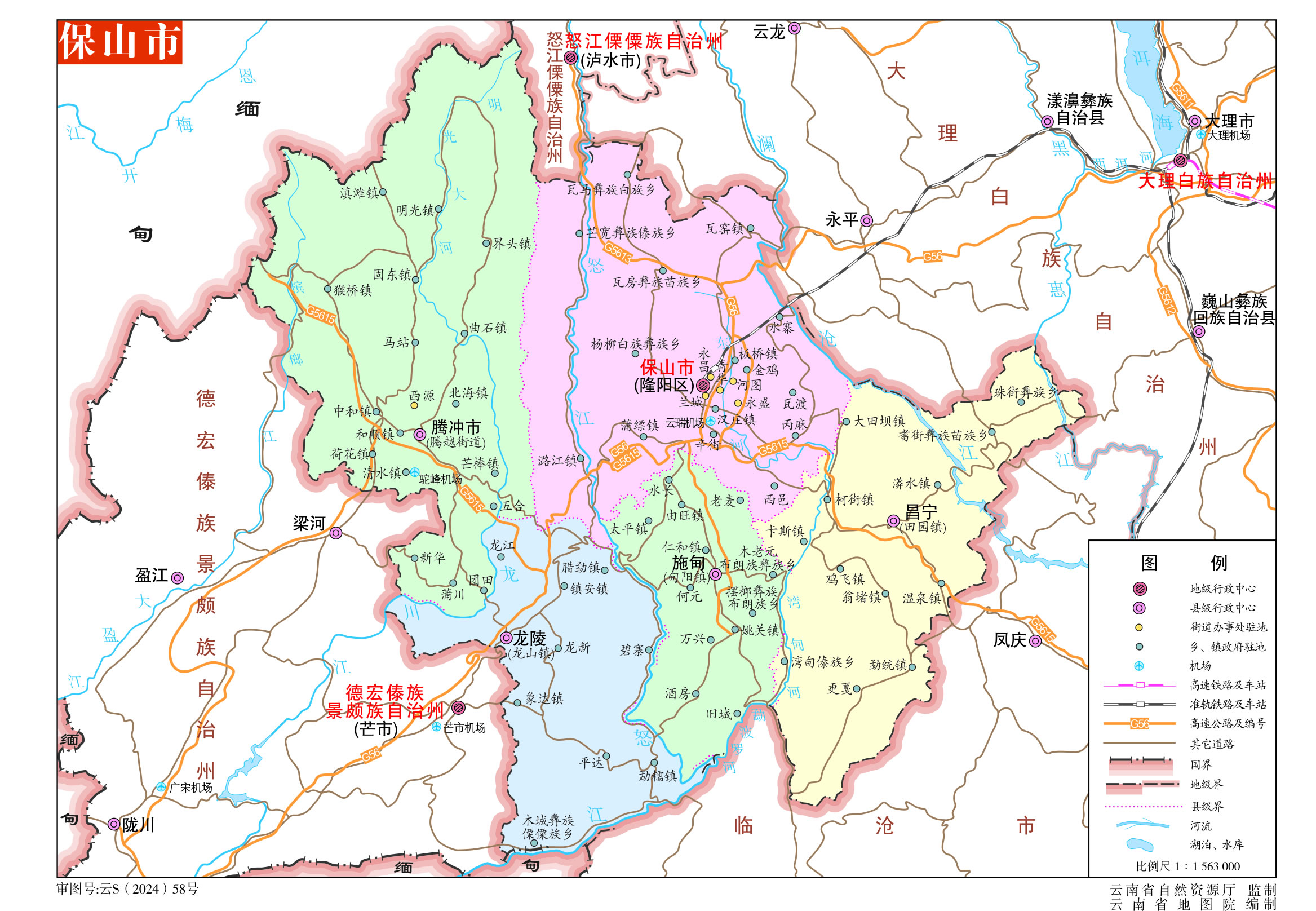 保山市轄1個區(qū)、3個縣、1個縣級市:
