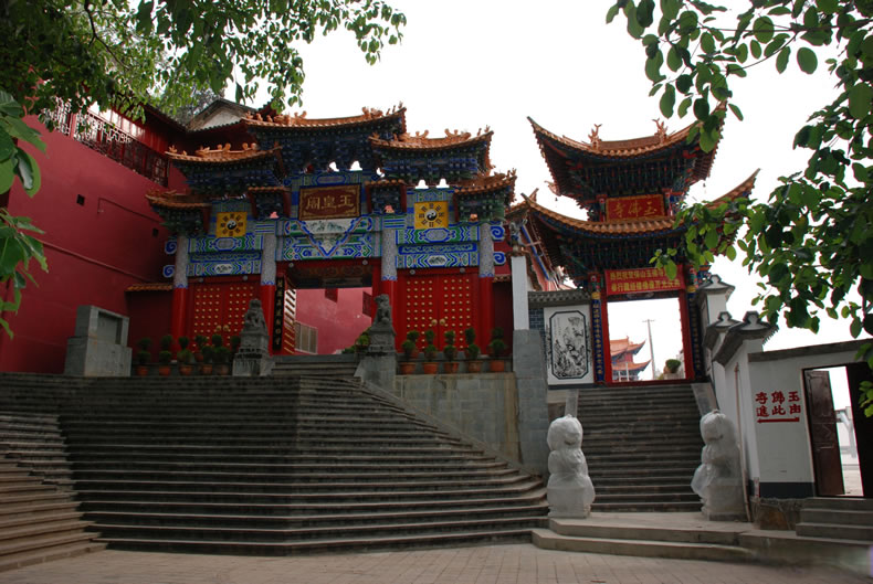 保山玉皇閣,位于保山市城西太保山上,是保山境內規(guī)模最大,保存最好的道教建筑群之一。始于嘉靖二十八年(1549年),三十八年(1559年)落成開放。占地面積3399.2平方米,依地形而建,坐西向東,橫向布局為三個院落,分別為山門、三官殿、灶君樓。主體建筑玉皇閣居于整個建筑群的中央,由大殿及鐘、鼓二亭組成一個“品”字形院落。整個建筑氣勢雄偉,結構精湛,裝飾華美,充分體現(xiàn)了封建社會帝王為尊、皇權至上的構思主題,具有極高的史學研究和藝術鑒賞價值。 2006年5月,保山玉皇閣被國務院公布為第六批全國重點文物保護單位。