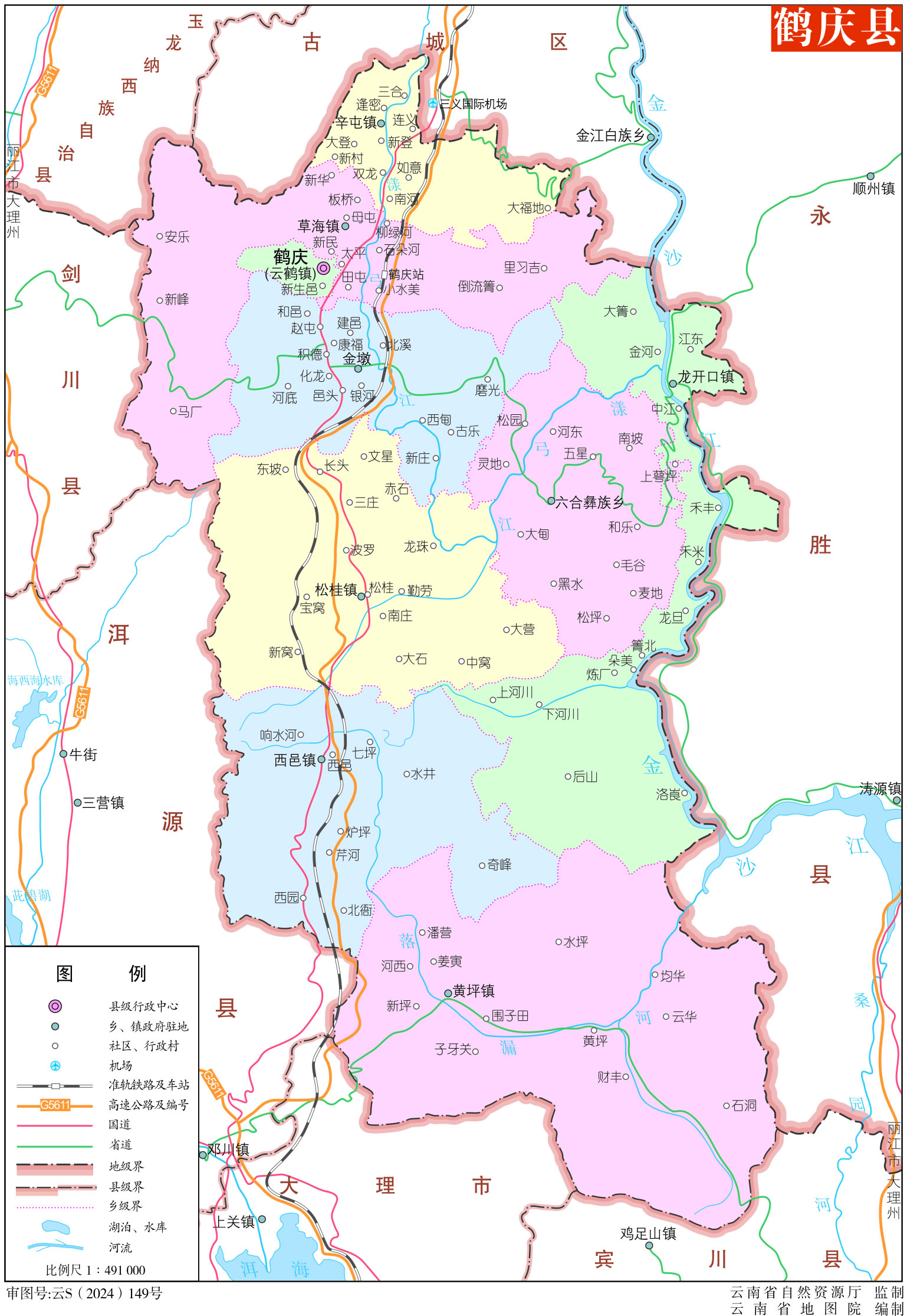 鶴慶縣轄7個鎮(zhèn)、2個鄉(xiāng):