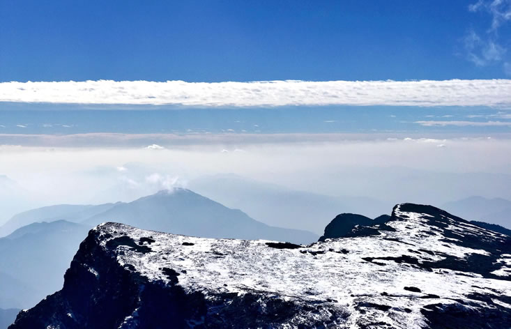 毛澤東同志“烏蒙磅礴走泥丸”的詩詞就是對(duì)烏蒙山的最好寫照。大牯牛寨山是烏蒙山脈最高峰,氣勢(shì)逼人,此山距東川城區(qū)水平距離僅9千米,海拔高差卻達(dá)2767.3米。山上巖石大都為堅(jiān)硬的石灰?guī)r,呈褐色。