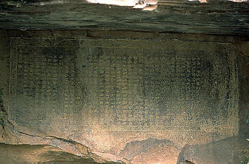 鏨字巖摩崖石刻,位于屏山鎮(zhèn)發(fā)明村北側(cè)掌鳩河西岸上,由二方漢文石刻和一方彝文石刻組成。兩方漢文石刻“武定軍民府土官知府鳳世襲腳色記”和“鳳公世系”記載的事實真實可靠,在許多問題上比《明史土司傳》、《土官底薄》、《云南通志》以及《武定府志》、《祿勸縣志》等書詳備。彝文石刻與上述二石刻并列,寬2m,高82cm,直書橫排,共33行,563字,四周刻葵葉雙線邊框,這方彝文摩崖,主要記述了羅婺部(鳳氏)十四代世襲土知府350多年的譜系。它與貴州大方縣的千歲衢碑同為最古老的彝文碑記。