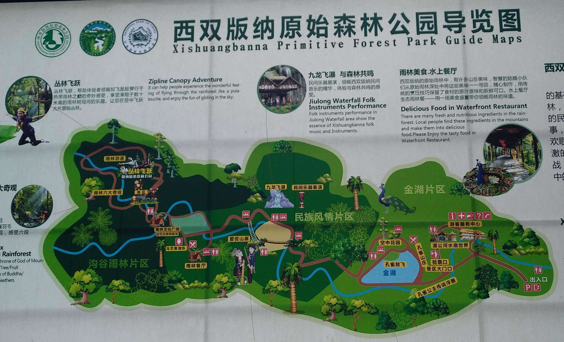 中心游憩區(qū),建有娛樂中心,會議服務(wù)中心,西雙版納民族歌舞餐廳,停車場所?蔀榭腿嘶I辦會議,組織娛樂活動,西雙版納學(xué)術(shù)交流,貿(mào)易洽談會……。西雙版納原始森林公園,森林密布,山青水碧,游覽面積寬闊,西雙版納民俗活動多樣,服務(wù)設(shè)施齊全。游人們可以在此飽覽風(fēng)光,體驗西雙版納民族風(fēng)情,獲得美的享受。
