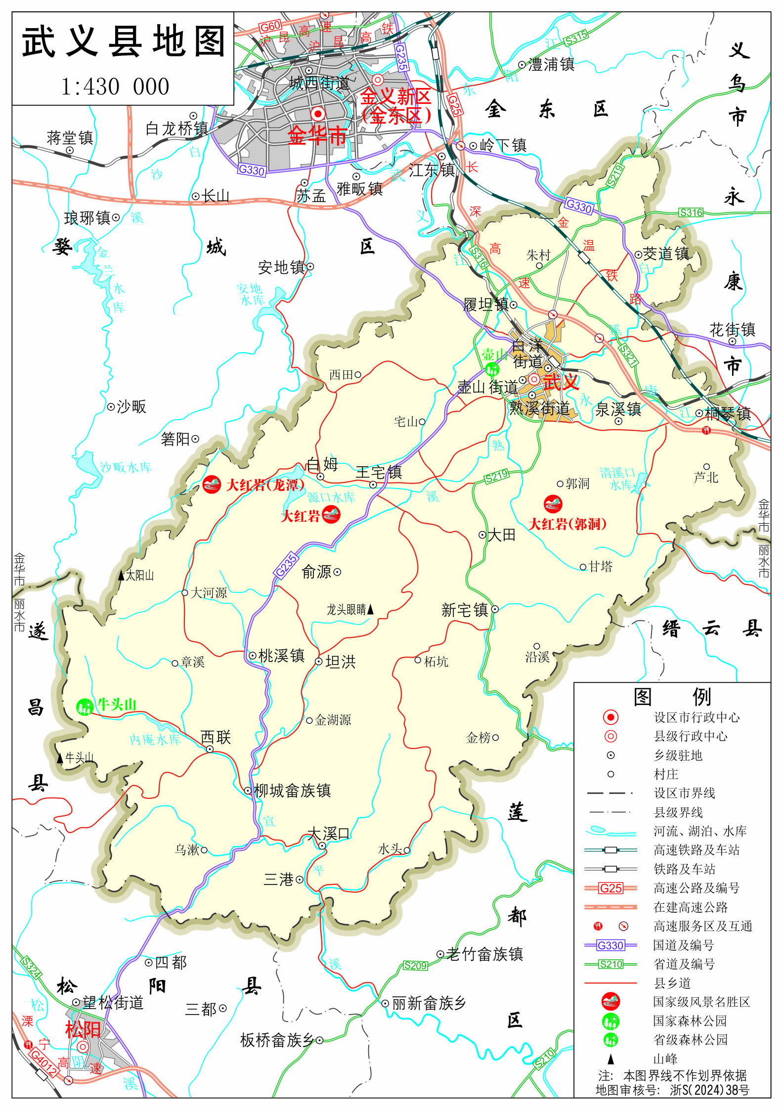 縣人民政府駐壺山街道壺山下街。郵編:321200。行政區(qū)劃代碼:330723。區(qū)號:0579。