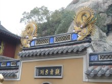 法雨寺又稱后寺,初名海潮庵,清康熙三十八年(1699年)賜“天華法雨”額,遂稱法雨禪寺。建筑布局依山取勢,分群遞升。其中九龍殿最為輝煌,該佛殿是從南京明故宮整體搬遷而來的,殿內(nèi)有普陀山三寶之一的“九龍藻井”。