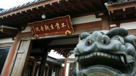不肯去觀音院,位于紫竹林。不肯去觀音院是當年慧鍔法師供奉不肯去觀音的地方,是普陀山觀音道場的發(fā)源地,F(xiàn)殿內(nèi)供仿唐式十一面觀音像,寺院西側(cè)筑“三十三觀音靈場”長廊,內(nèi)塑日本33座供奉觀音的寺院主尊。