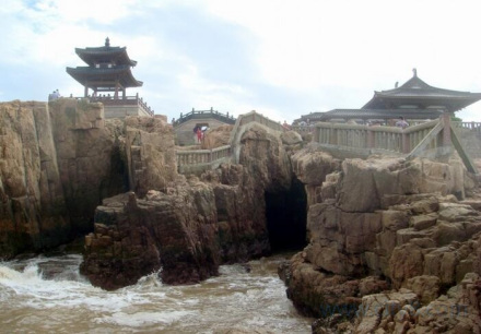 潮音洞口朝大海,呈張口狀。日夜為海浪所擊拍,潮水奔騰入洞口。若遇大風,浪花飛濺,浪沫直沖“天窗”之上。如是晴天,洞內(nèi)七彩虹霓幻現(xiàn)。