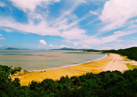 千步金沙長1370米,寬400余米,是舟山群島第二大沙灘,位于舟山普陀山。千步金沙又稱塔灣金沙,據(jù)傳在塔灣南側(cè)龍?zhí)犊釉ㄓ幸皇蹫车褂乘,故而得名。千步金沙屬細型沙質(zhì),細軟純凈。