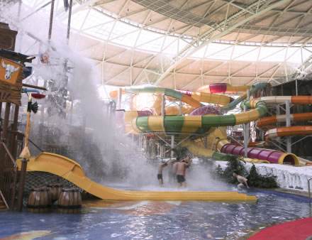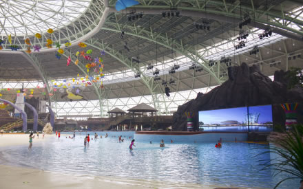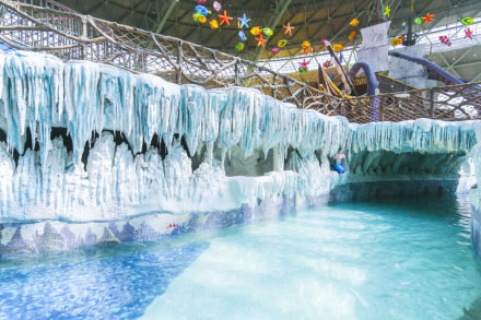 水之王國(guó)場(chǎng)館擁有室內(nèi)沙灘、超大型組合滑道(異域湍流)、冰谷漂流等項(xiàng)目設(shè)施。