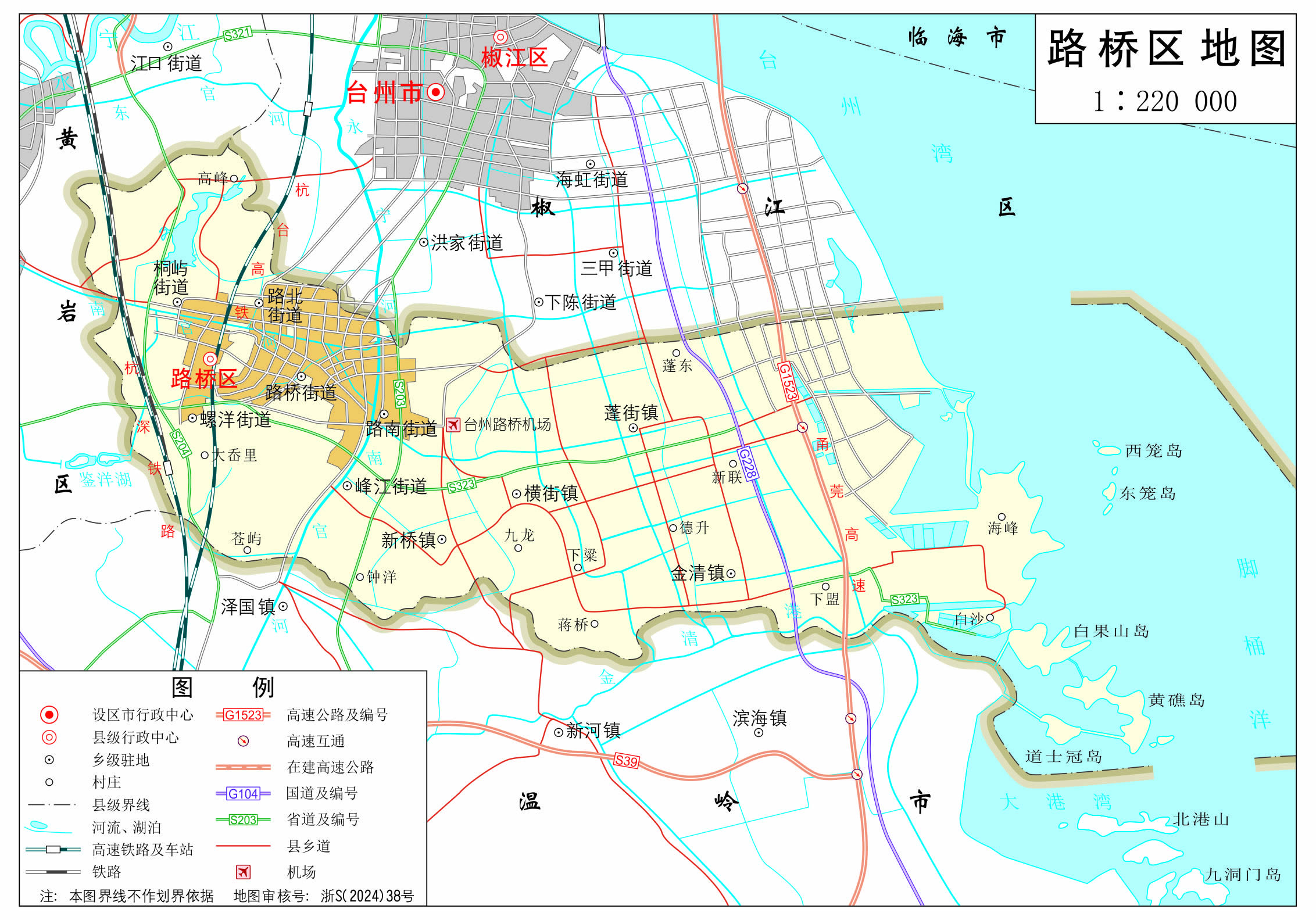街道:路南街道、路橋街道、路北街道、螺洋街道、桐嶼街道、峰江街道