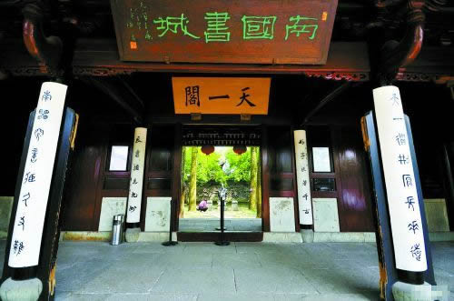 天一閣,位于浙江省寧波市海曙區(qū),建于明嘉靖四十年至四十五年(1561年—1566年),由當時退隱的明朝兵部右侍郎范欽主持建造,占地面積2.6萬平方米,已有400多年的歷史。