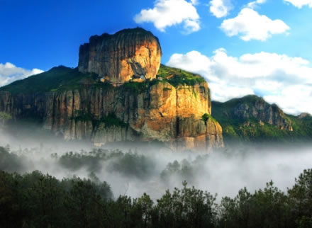 南雁蕩山,簡稱南雁,位于平陽縣西部,距溫州市區(qū)87千米。主峰明王峰,海拔1080米,山頂有泥塘沼澤,秋科時(shí)節(jié)有大雁在此棲息,且與北雁蕩山遙望相對,故名南雁蕩。南雁蕩山總面積97.68平方千米,群巒疊翠,飛瀑溪潭,共有67峰、28巖、24洞、13潭、8潭、9石。南雁蕩的開發(fā)較早于北雁蕩,五代時(shí)高僧愿齊就率三百名門徒在此開發(fā)。