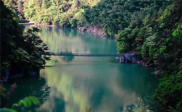 灑對(duì)岸群山碧翠有被嬉稱為金字招牌的白石巖和獅子口等因臥鸕石乘竹筏順流而下,過(guò)山田大橋可瀏覽當(dāng)?shù)厣矫袷褂玫膫鹘y(tǒng)香粉碓。